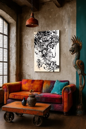 Каждая линия здесь интуитивна, как и сам процесс создания работы. Взгляд блуждает по узорам, открывая новые детали и смыслы. А что увидишь в этой картине ты?