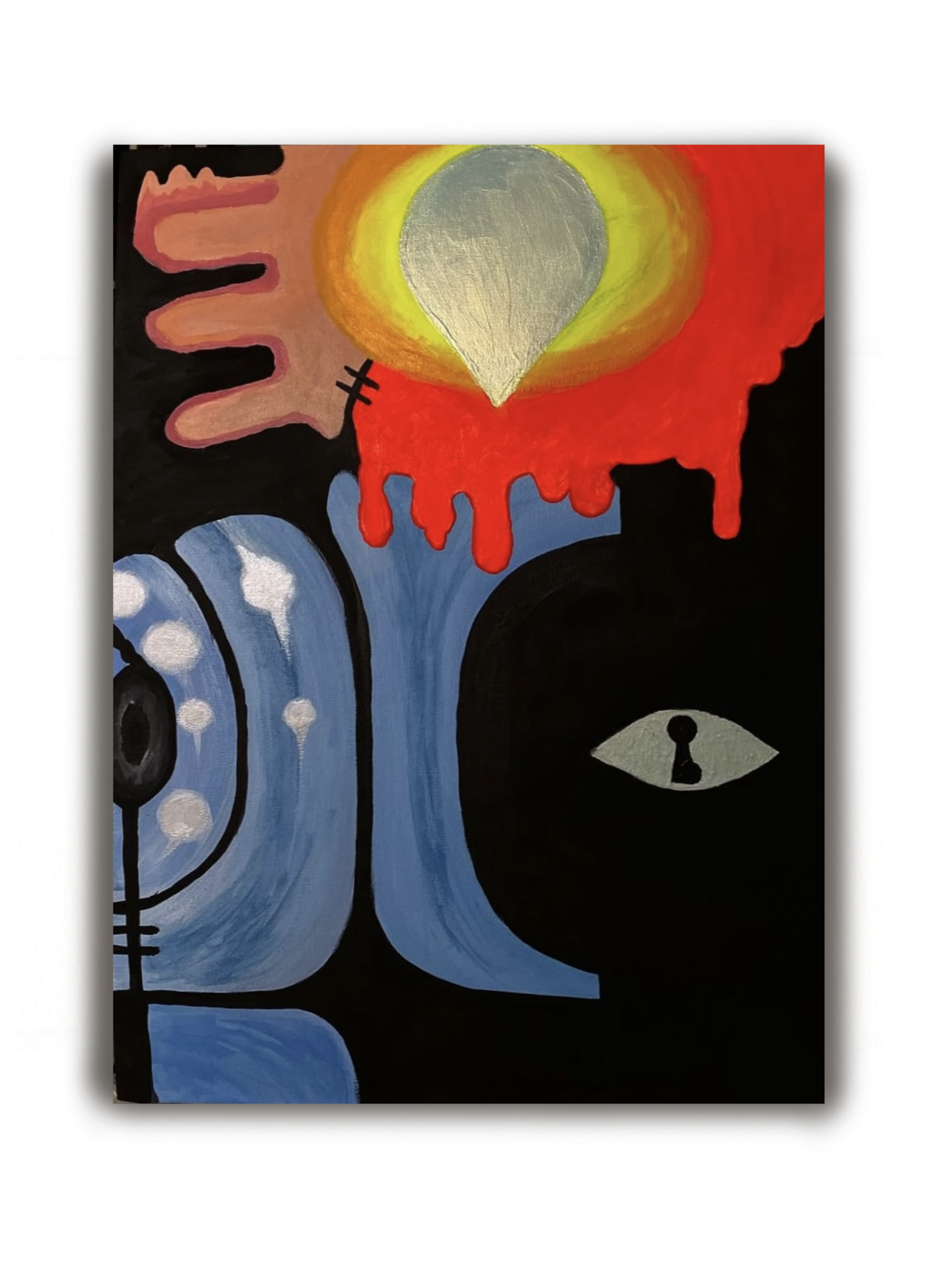 Эта картина олицетворяет секреты не послание , которые мы тщательно прячем и наши эмоции вокруг некой тайны - сенсации ! Глаз светящийся в темноте с замочной скважиной вместо зрачка изображает тайгу вы щегол уровня!