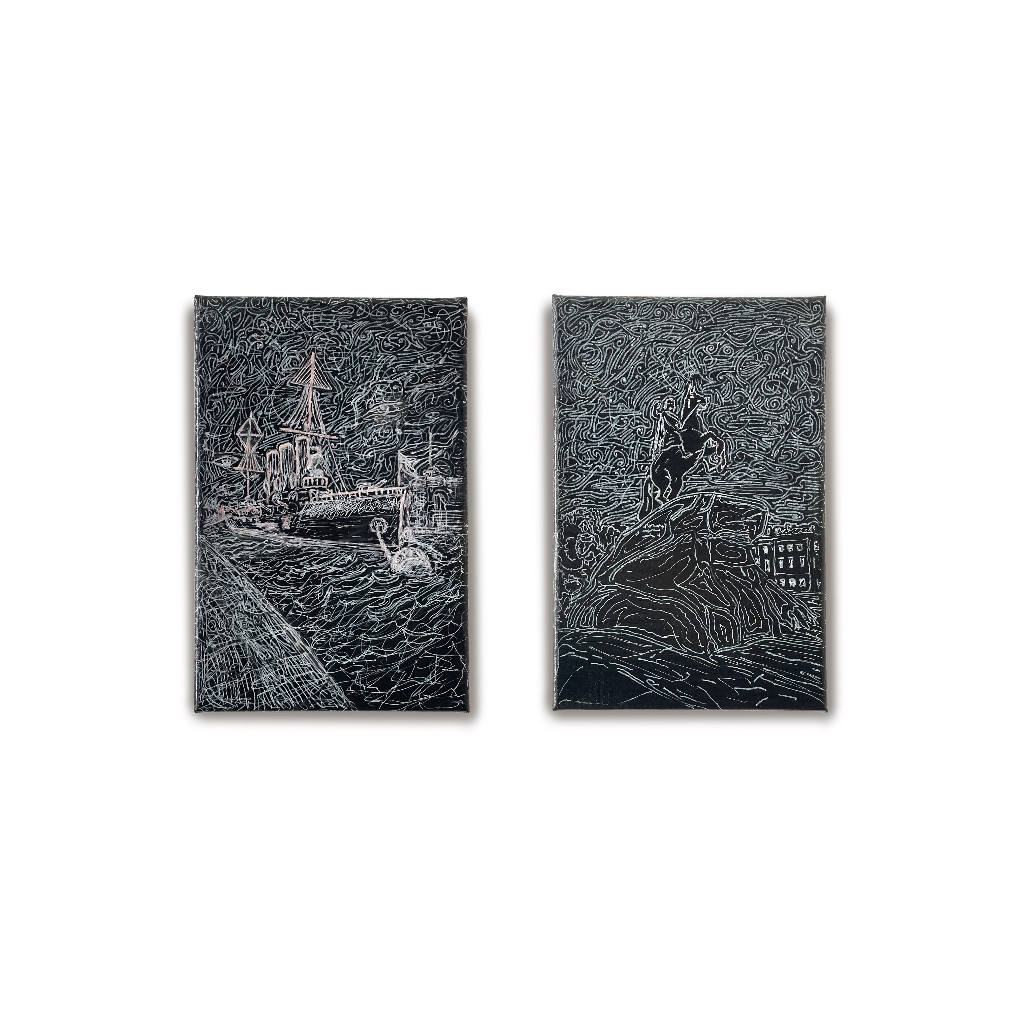 Эти две работы — часть архитектурной серии, где я передаю не просто формы, а энергию города. Для меня Петербург — это движение, история и внутренняя сила.