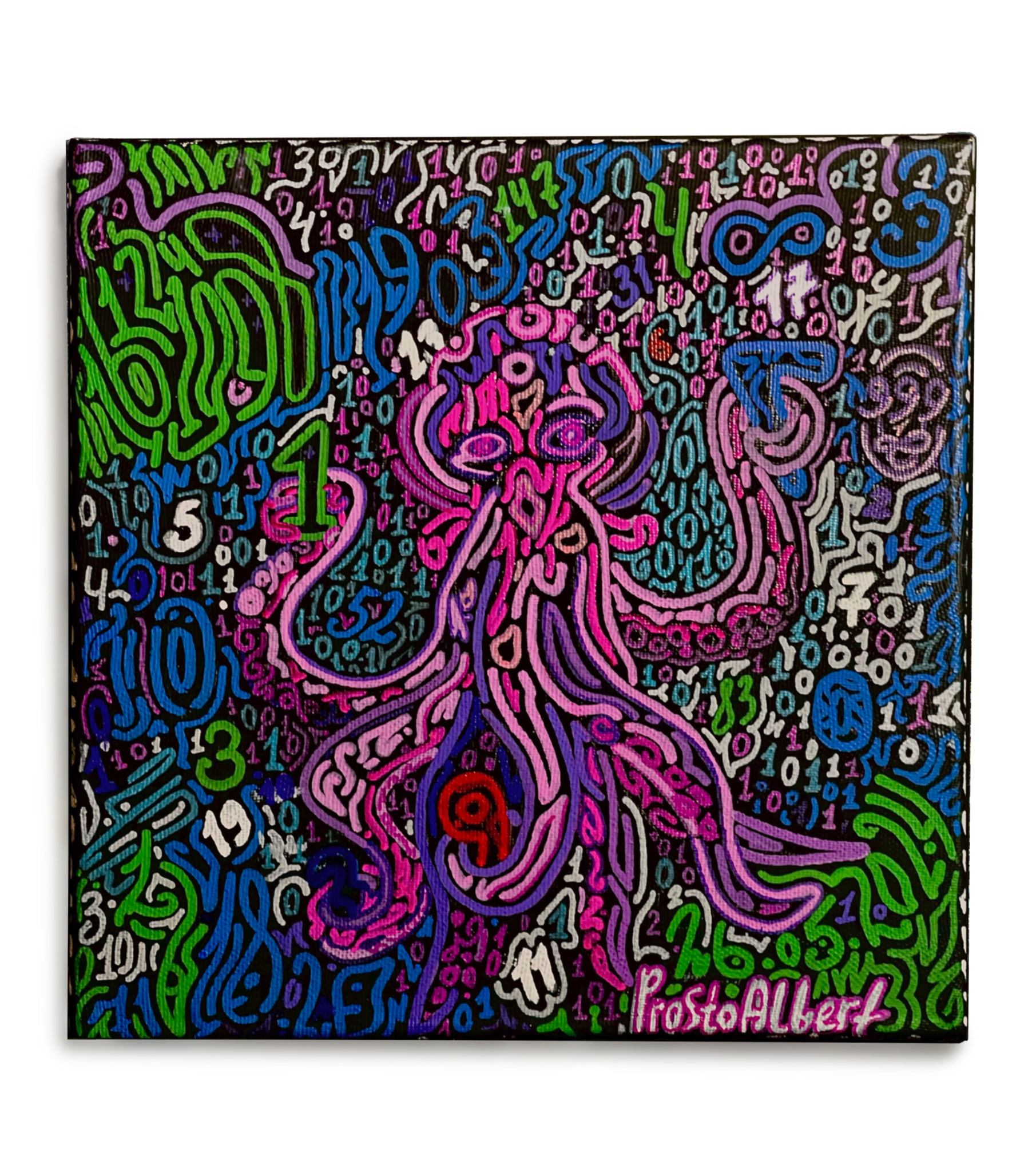 «Хаос чисел» — работа, исследующая тему времени, порядка и хаоса в современном мире. В центре композиции изображён осьминог, чьи щупальца тянутся к множеству цифр, разбросанных по всей поверхности картины. Он символизирует человеческий разум, пытающийся уловить смысл, структуру и понимание в бесконечном потоке информации и времени.