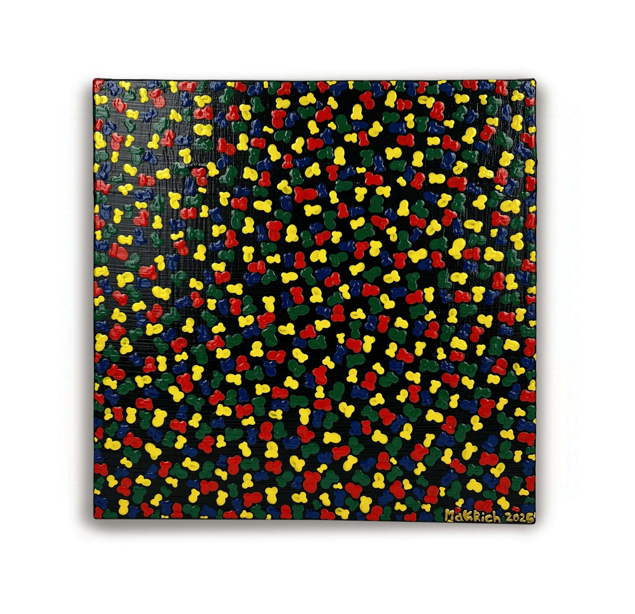 Моё любимое сочетание цветов — красный, жёлтый, зелёный и синий. На чёрном фоне эта палитра смотрится особенно выразительно и на протяжении многих лет остаётся востребованной: подобные работы ценятся и раскупаются, словно горячие пирожки. Достойно уважения!