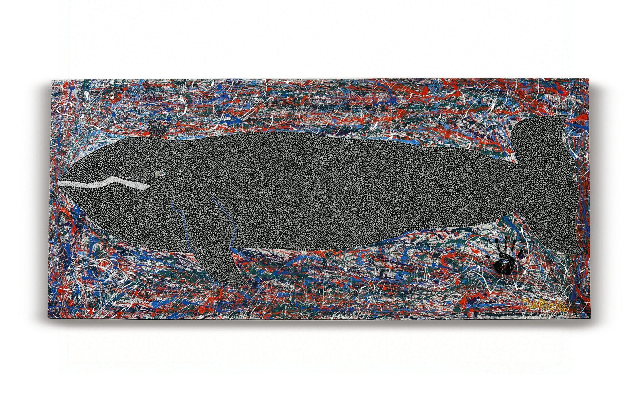 Эта картина — самая масштабная и трудоёмкая работа за все годы моего творческого пути. На полотне изображён царь морей — кит. Идея зрела во мне два года, и наконец я смог воплотить её, представив миру это чудо.