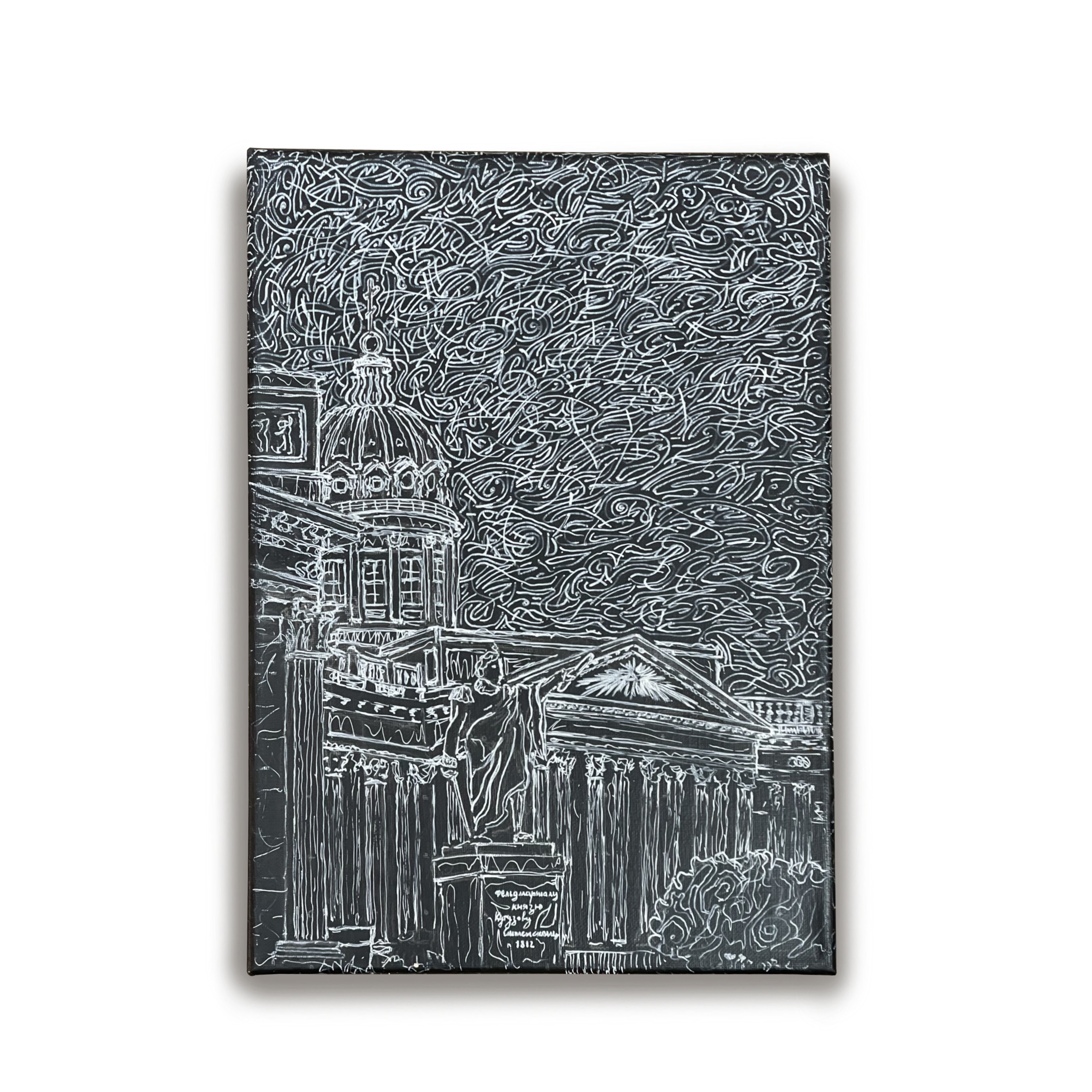 Эта идея отражена и в композиции картины: архитектура показана нечеткими линиями — как всё, что создаётся людьми, через усилие, поиск и несовершенство. А небо, напротив, выведено чётко и ясно, как проявление высшего порядка и покоя.