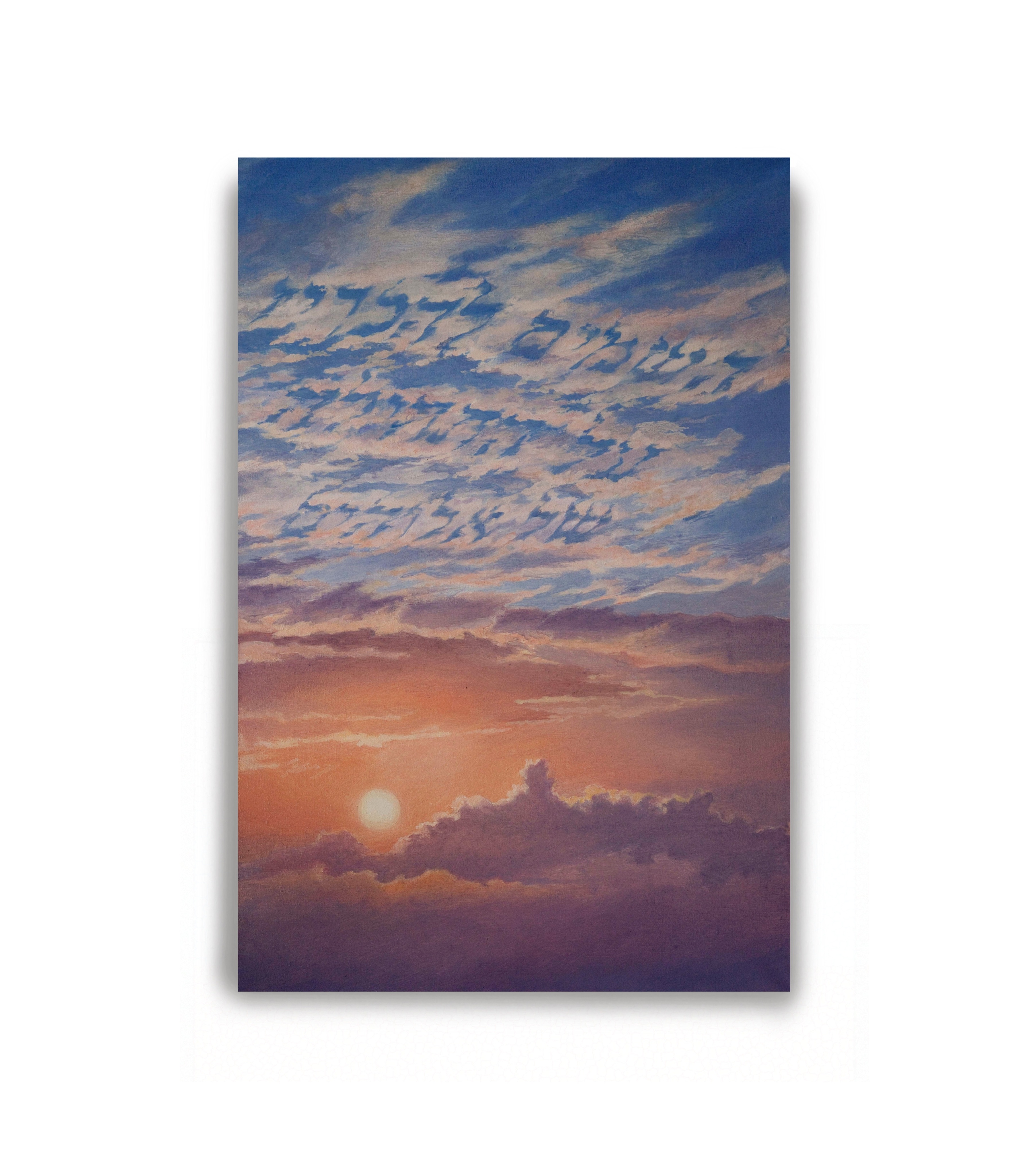 «Небеса провозглашают Божью славу, о делах Его рук возвещает их свод». На картине искусно написан небесный рассвет, где промежутки в облаках составляют буквы на иврите. Если вникнуть в смысл этих древних еврейских слов Библии (Торы) чуть глубже, то мы поймём, что в начале стиха "небеса" подразумеваются бесконечные космические дали, миры и пространства; в то же время "небесный свод" в конце псалма подразумевает как раз таки тропосферу с её облаками. Так или иначе, картина создана во славу имени Всевышнего.