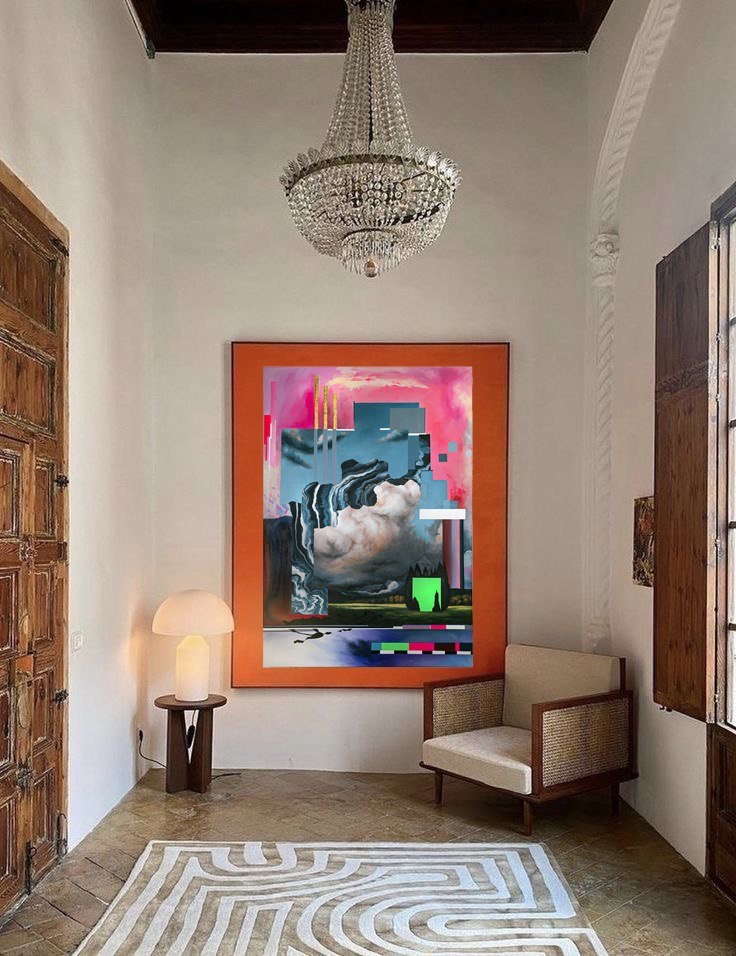 «Вне шума» — о парадоксе современного человека. Физически находясь на природе, он продолжает мыслить фрагментами: о прошлом, будущем, делах, сообщениях, потоках данных. Картина визуализирует этот внутренний шум — момент, когда мысли бегут быстрее ощущений, а настоящее ускользает.