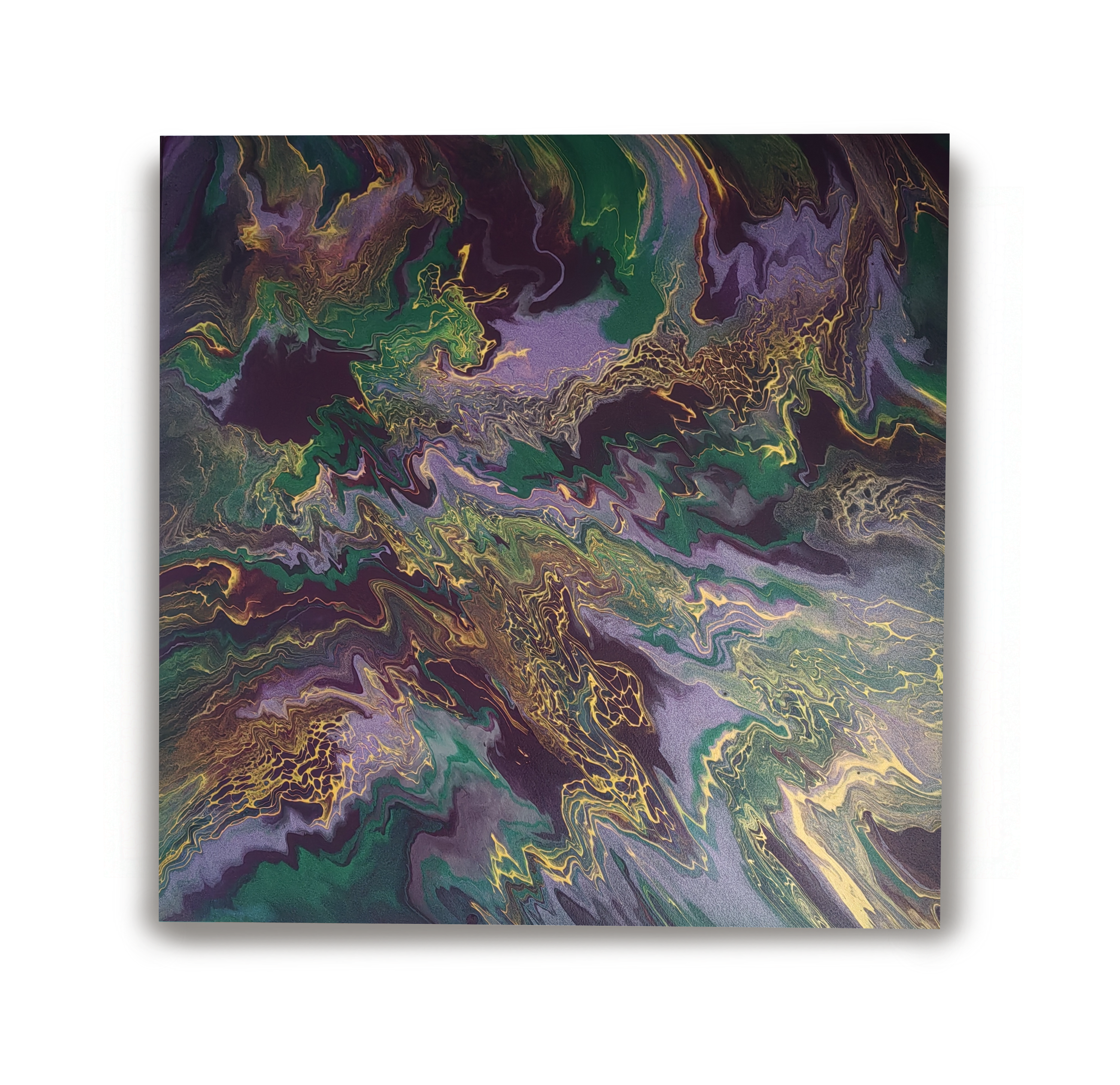 Выразительное абстрактное полотно, способное стать акцентным элементом в современном или эклектичном интерьере. Глубокие оттенки зелёного, фиолетового и охры с деликатными текстурными переходами формируют динамичную композицию, визуально «оживляющую» пространство. Картина органично впишется как в минималистичную гостиную, так и в креативное офисное пространство, добавляя импульс движения и визуальный интерес без перегрузки.